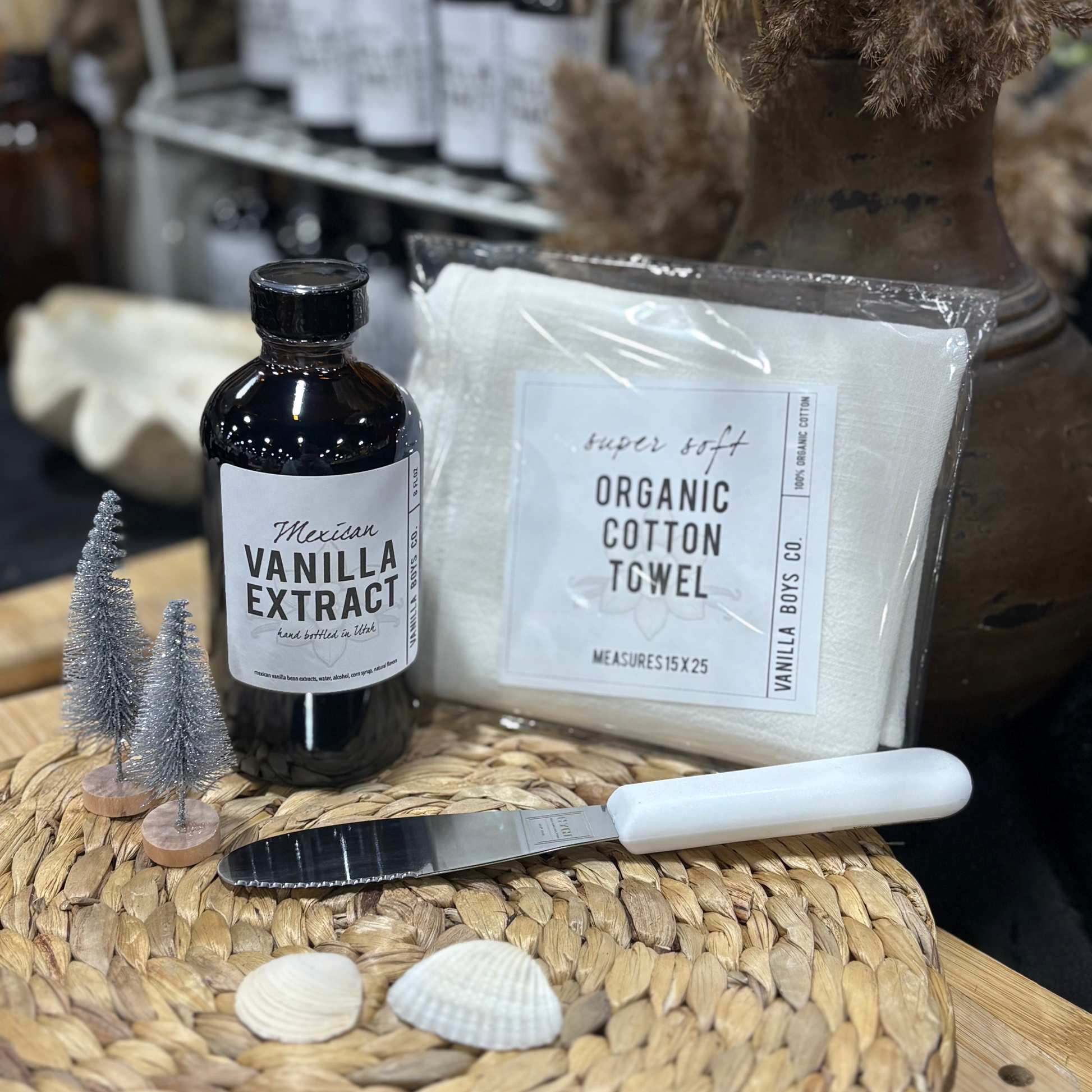 8oz Pure Mexican Vanilla + Tea Towel + Gygi Spreader (White Handle – 6")